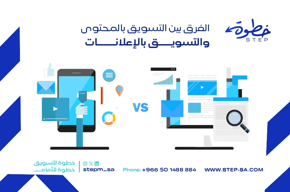 في الوقت الحالي، أصبحت طرق التسويق الإلكترونية متعددة ومختلفة، ومن أبرزها التسويق بالمحتوى والتسويق بالإعلانات، وخاصة في السوق السعودي والذي يتسم بميزات تنافسية كبيرة، مما يجعل التحدي أكبر لتحقيق النجاح على الإنترنت، ولذلك يعتبر فهم الفرق بينهما أمرًا مهمًا من أجل تحديد الاستراتيجية المناسبة لعملك، ومن خلال السطور التالية سنوضح لكل متابعينا الكرام متابعي موقع شركة خطوة للتسويق الإلكتروني، ما هو الفرق بين التسويق بالمحتوى والإعلانات، وكيف يمكن لكل منهما أن يخدم أهدافك التجارية بشكل مختلف..